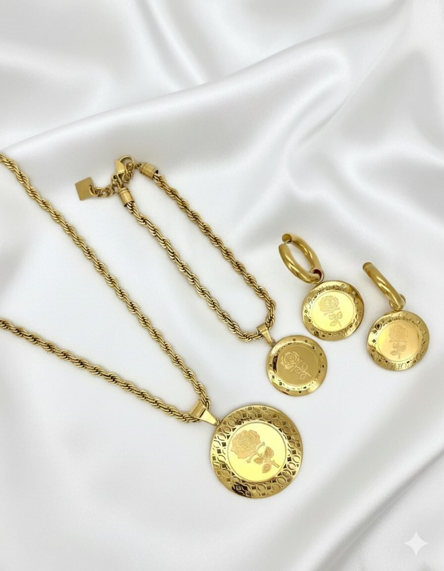 Parure Médaillon Rose Dorée – Acier inoxydable 🇫🇷